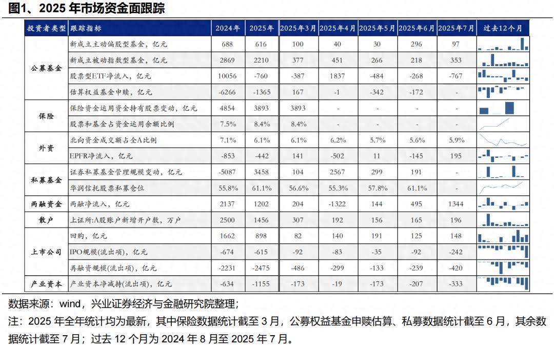 今年资本市场呈现“以内为主”的特征,杠杆资金、保险资金是市场边际重要增量资金,但随着市场回暖,外资在A股的参与度也持续回升。根据EPFR数据,7月投资于A股的海外基金净流入200亿元,其中被动型基金是外资回流的主要贡献,主动型海外基金仍有净流出。值得注意的是,北向资金占全A成交比例从7月初以来开始呈现趋势上行,外资在A股的参与度提升。